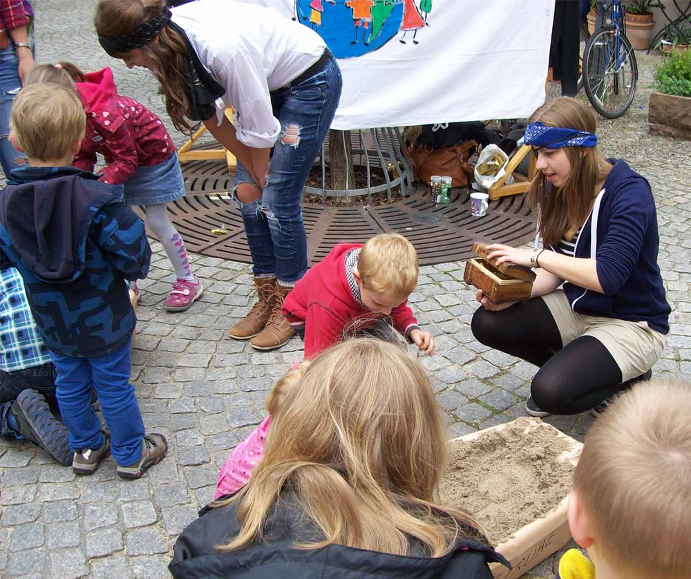Wir beteiligen uns jedes Jahr am Haller Kinderfest. Die Studierenden des Unterkurs bereiten im Rahmen des Unterrichts Spiel- und Kreativangebote aus aller Welt vor. Sie bauen beim Kinderfest einen Stand mit Pavillon auf und betreuen die Angebote in Dreiergruppen in der Zeit von 14 bis 17 Uhr. Das Motto lautet "Die Welt trifft sich beim Spielen". Beispiele für Spiele sind: